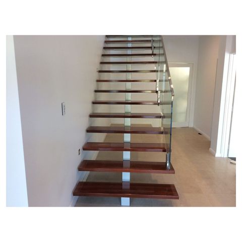 Prima Indoor Moderne Houten Trede Rechte Trap Met Onzichtbare Glazen Leuning Voor Villa 'S Indoor Trapontwerp U Kanaal Trap