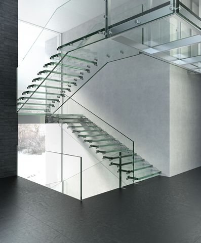 Prima Doorzichtige Glazen Trap Onzichtbare Beugel Ontwerp Gehard Gelaagd Glas Zwevende Gebogen Trap