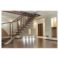 세련된 단단한 물푸레나무 레트로 간결한 직선 계단, 불투명 유리/탄소강 난간, 내구성 있는 가정용 실내 계단